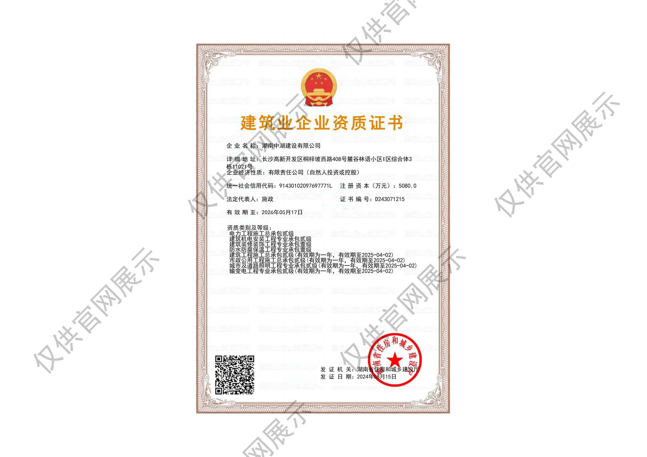 中湖建設(shè)建筑業(yè)企業(yè)資質(zhì)證書 壹級(jí) 貳級(jí)