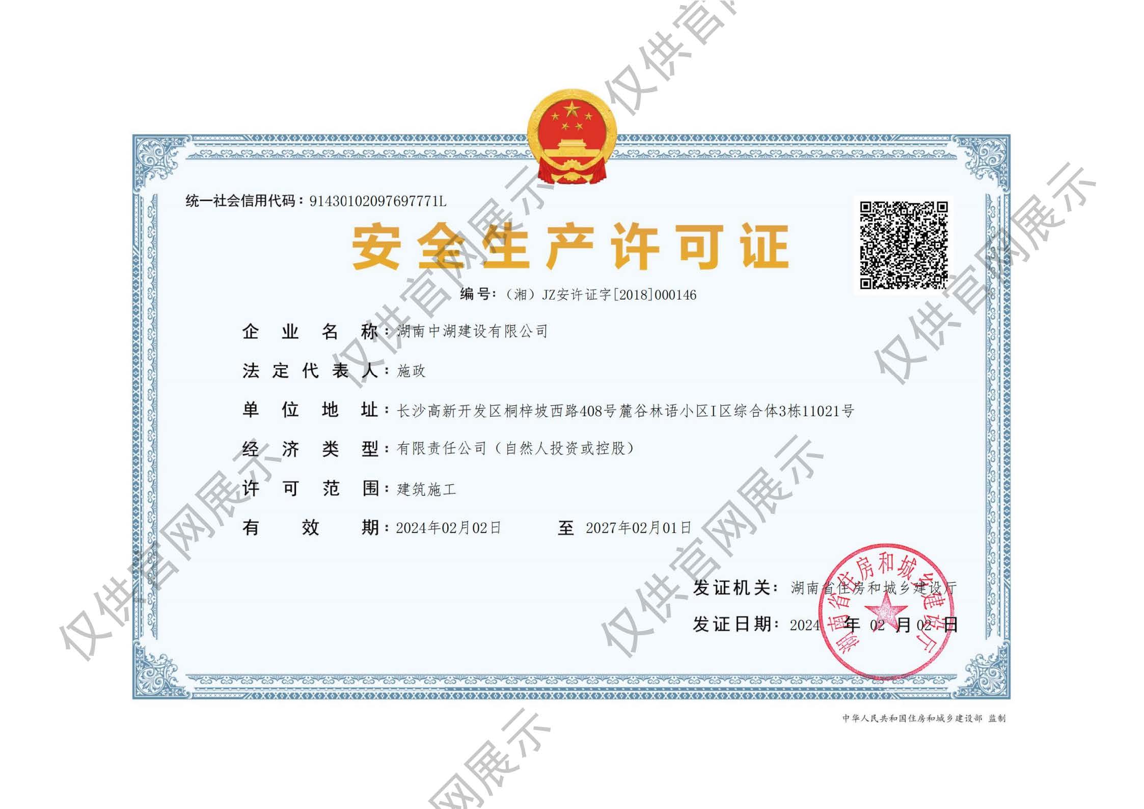 中湖建設(shè)安全生產(chǎn)許可證