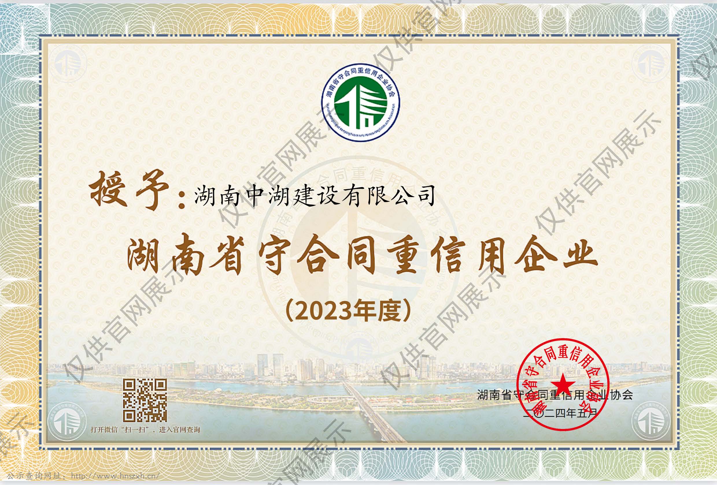 湖南省守合同重信用企業(yè)