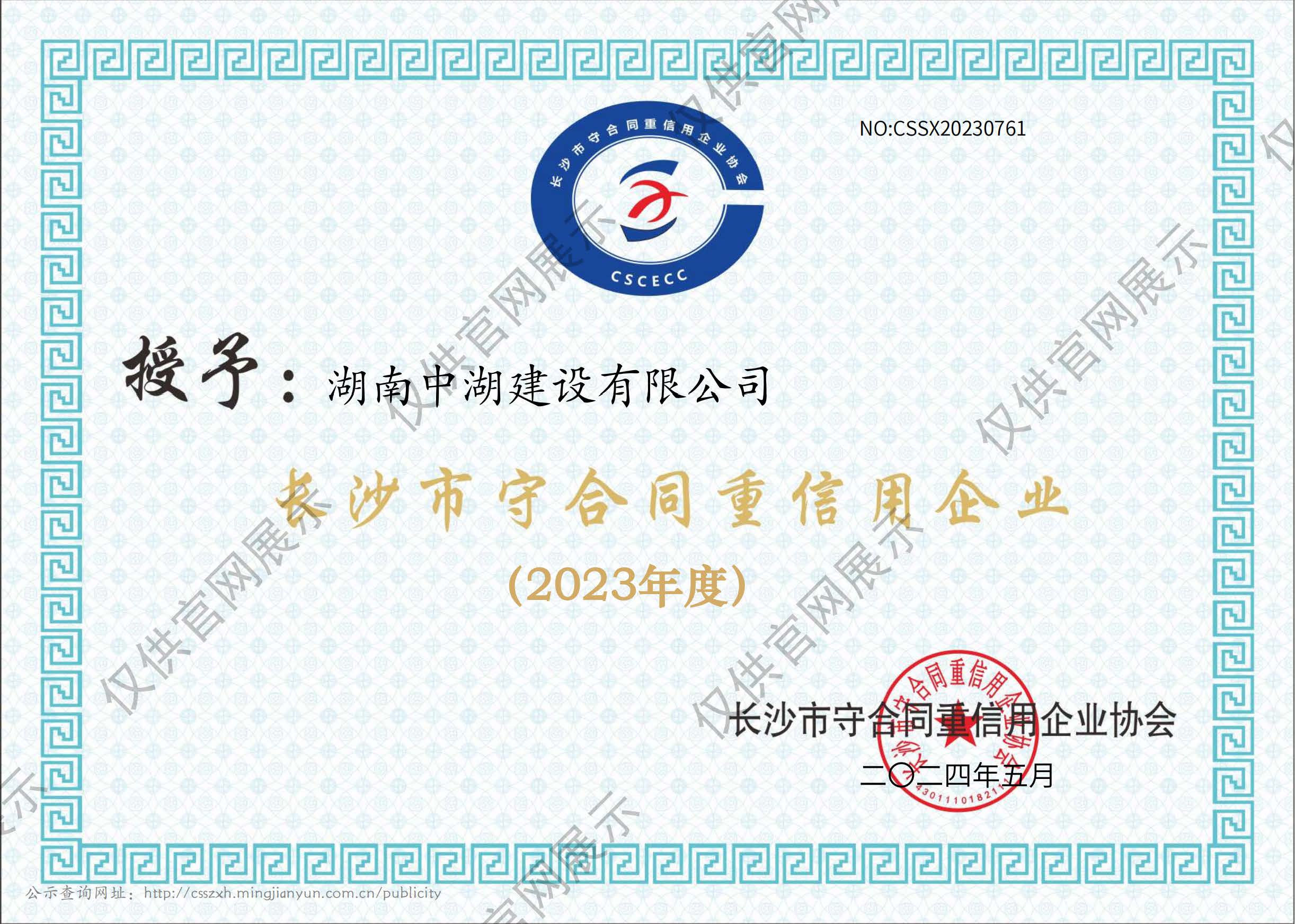 長(zhǎng)沙市守合同重信用企業(yè)
