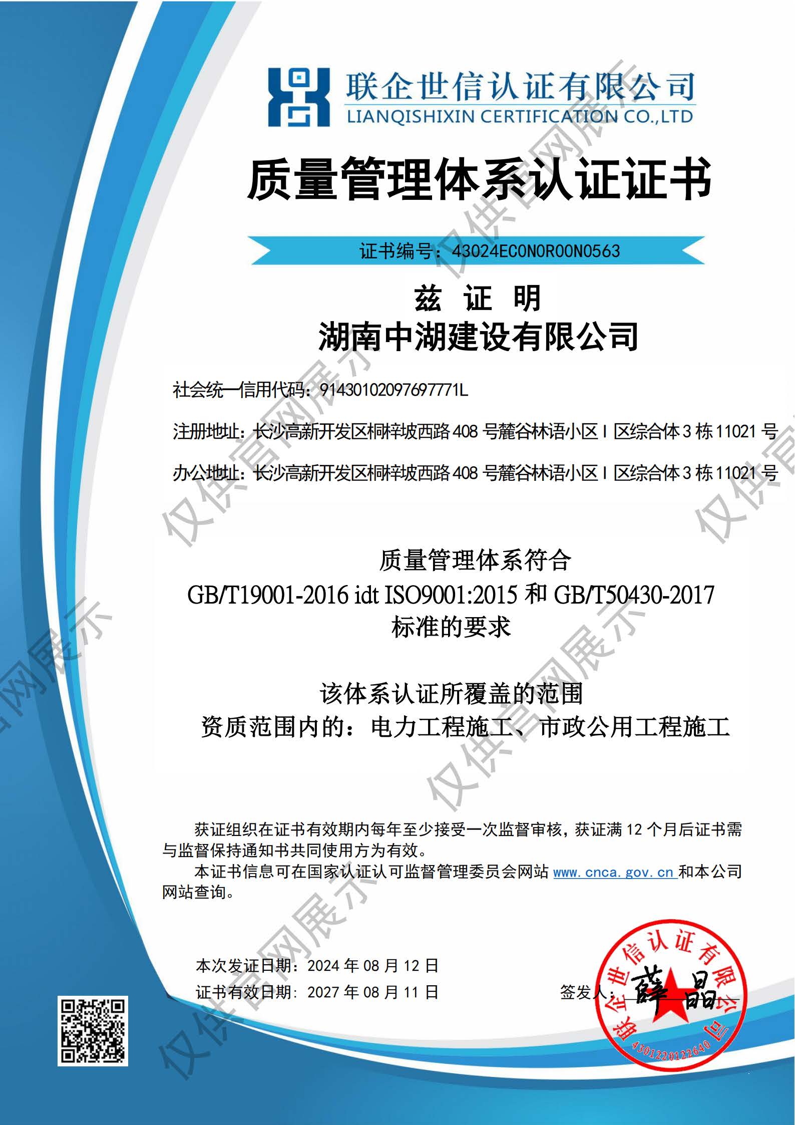 中湖建設(shè)質(zhì)量管理認(rèn)證